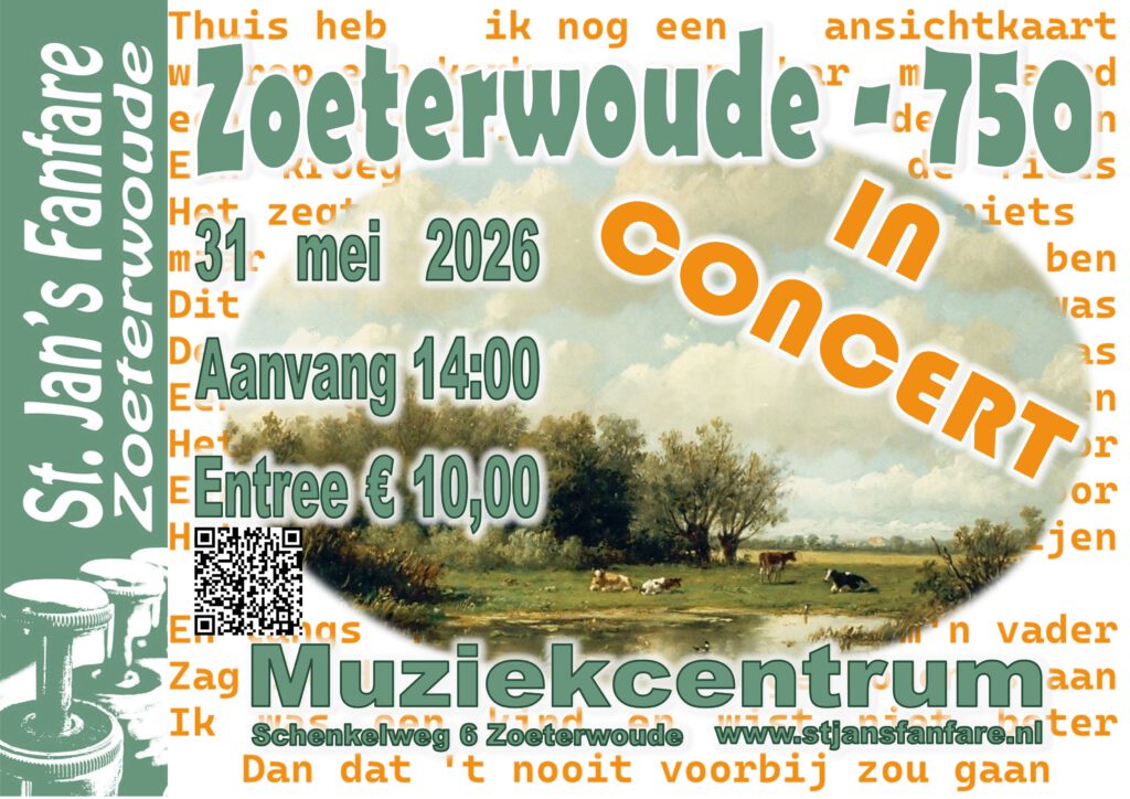 Het voorjaarsconcert staat geheel in het teken van 750 jarig bestaan van de gemeente Zoeterwoude waarin spraakmakende momenten in de geschiedenis van het dorp muzikaal omlijst worden.